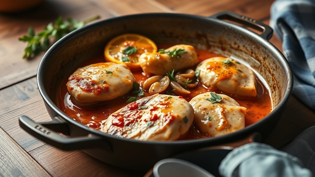 كلمات مفتاحية للبحث: طبخ سهل, وصفات طبق واحد, إلهام طهي, وليمة للحواس, دجاج بيكاتا بالبرتقال